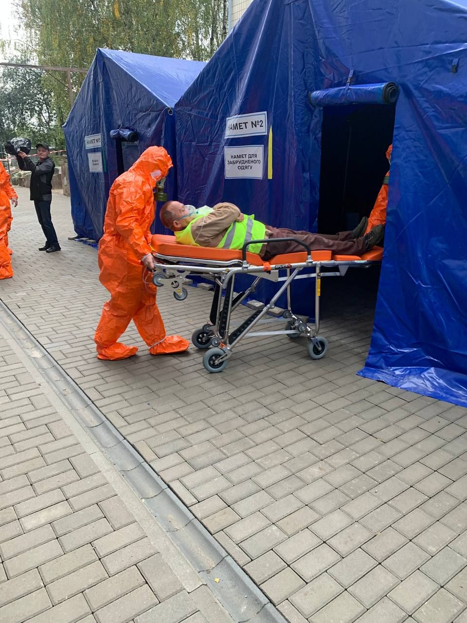 Під час тренінгу створені спеціальні зони для сортування медичних відходів та їх безпечної утилізації. Для наочності навчання було розгорнуто деконтамінаційні системи, аби оперативно обробляти постраждалих у разі масового забруднення. Також був організований санітарний майданчик для обробки транспорту.