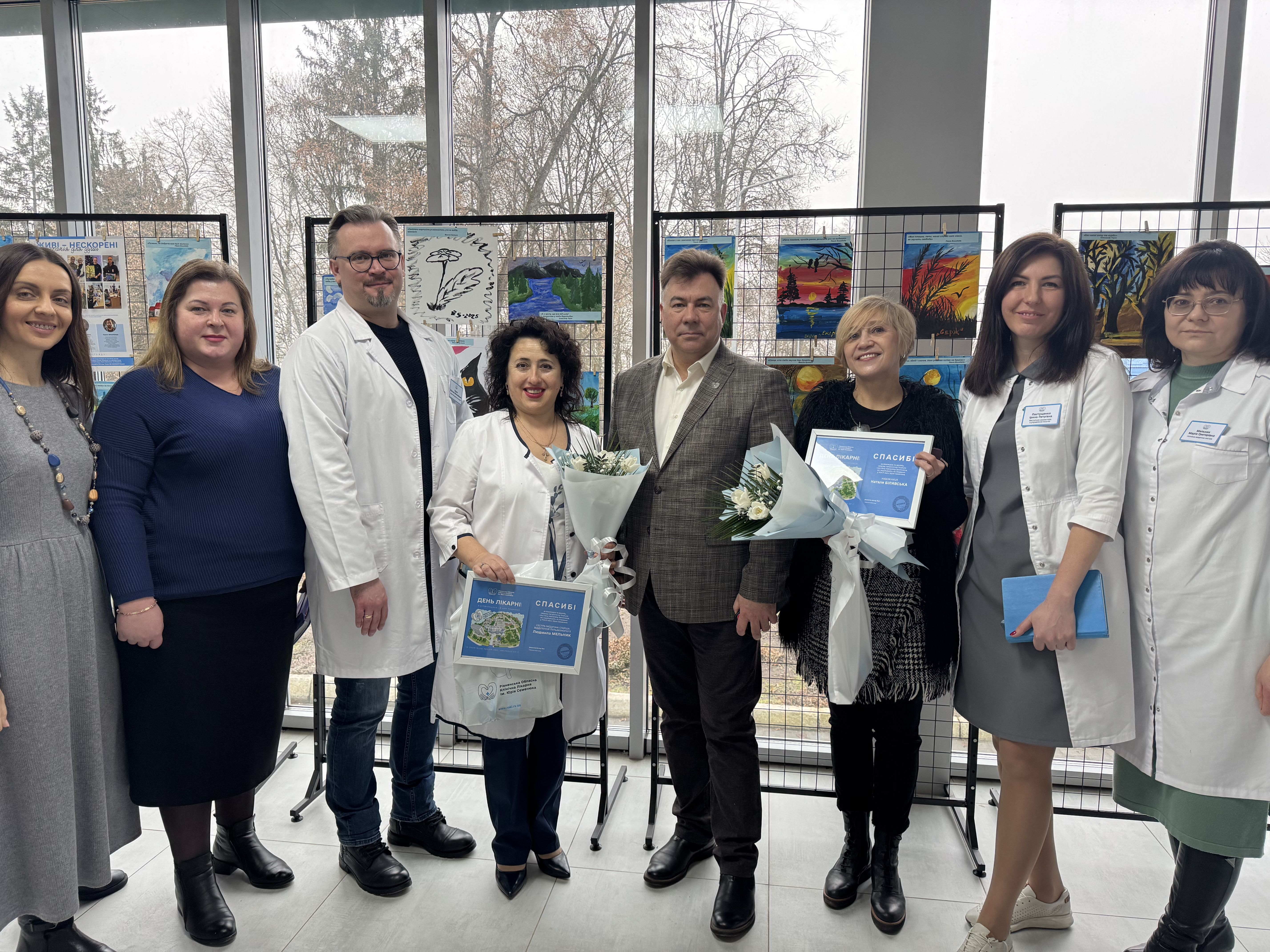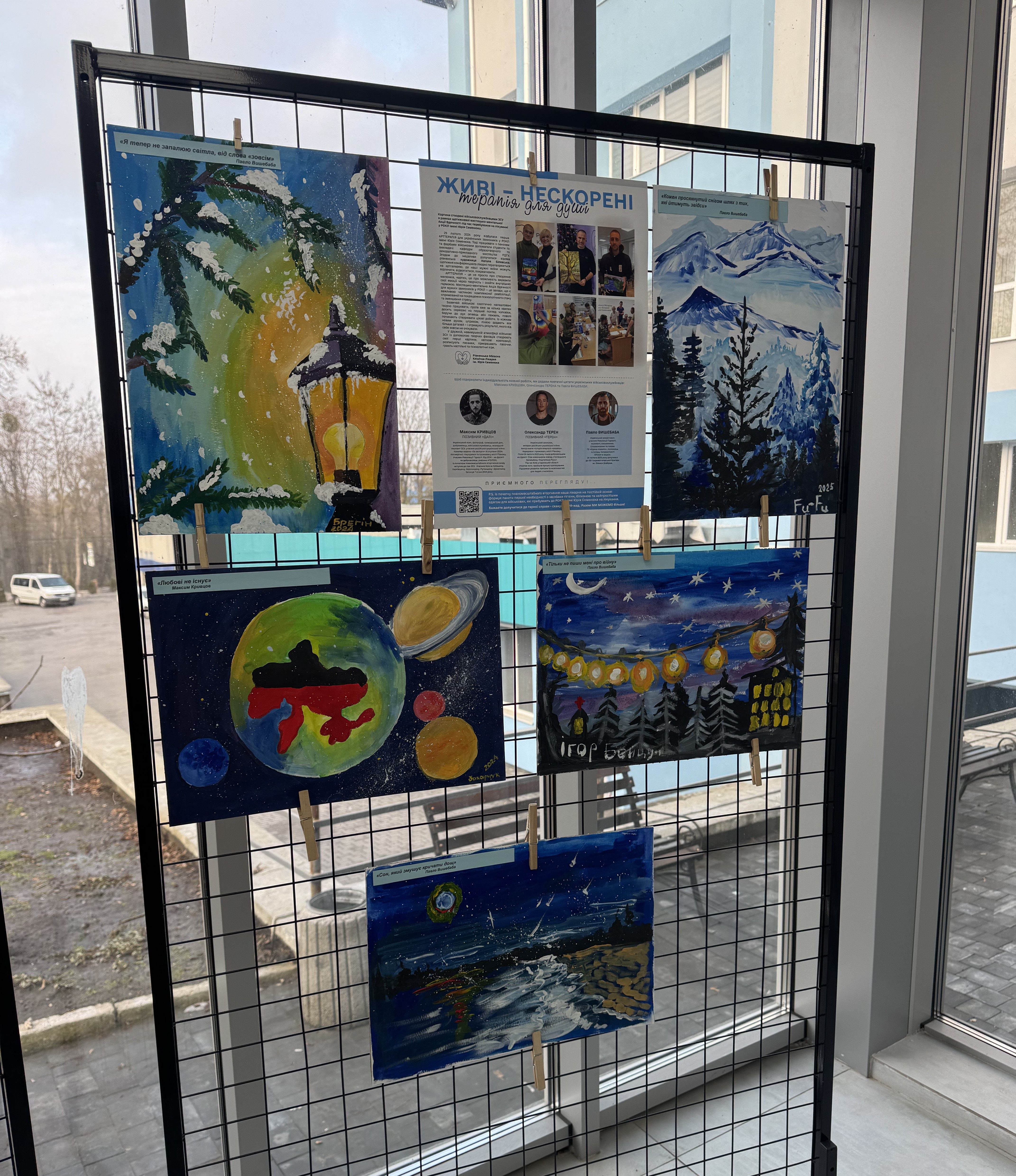 «ЖИВІ – НЕСКОРЕНІ. Терапія для душі» виставку із такою назвою встановлено у Рівненській обласній клінічній лікарні імені Юрія Семенюка в Амбулаторно-поліклінічному відділенні. Картини створені військовослужбовцями ЗСУ в рамках щотижневої мистецько-ментальної Акції Вдячності під час перебування на лікуванні в РОКЛ.