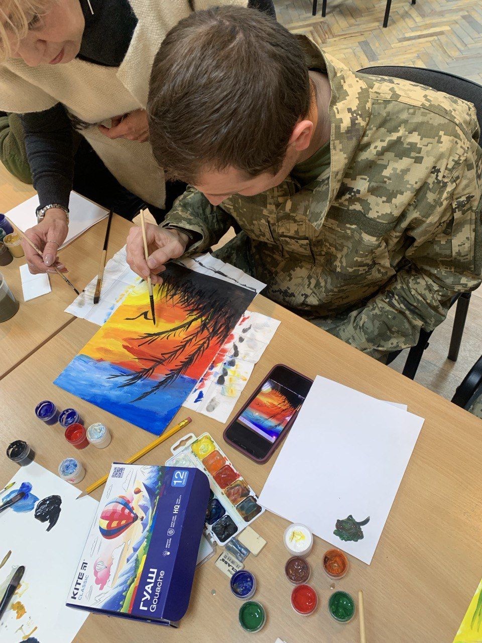Зазвичай військові скептично налаштовані творчо працювати, проте вже за кілька хвилин досить серйозні на перший погляд чоловіки, беручи до рук олівець або пензель, поволі починають створювати цікаві роботи. Із кожним новим рухом, штрихом, лінією додають все більше деталей – і в врешті отримують результат, якого від себе зовсім не очікували.