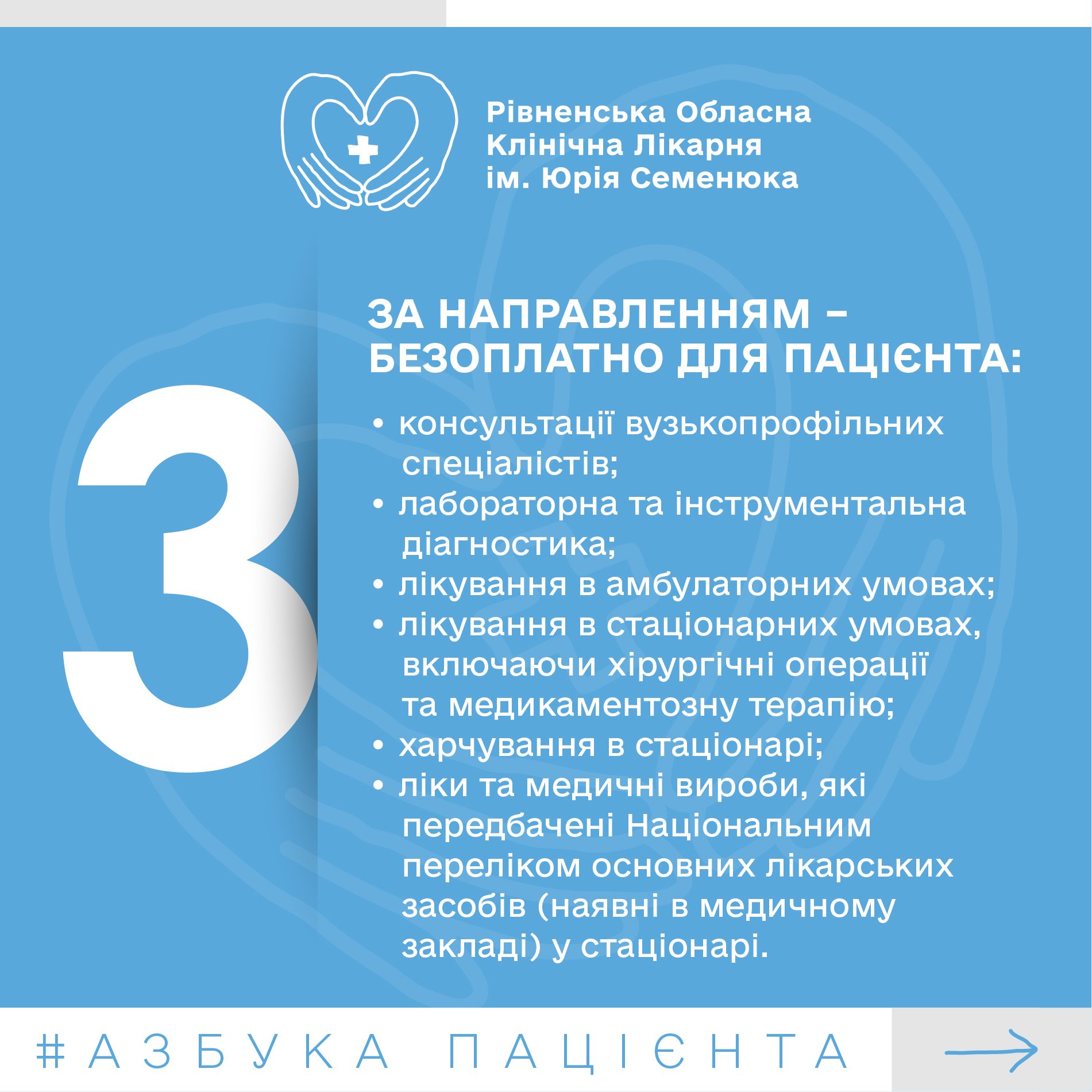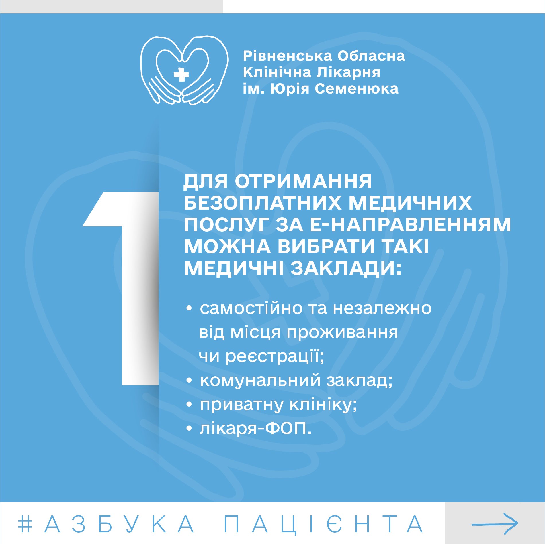 Отримати безоплатну медичну допомогу можна в будь-якій лікарні, яка уклала договір із НСЗУ на відповідний пакет послуг. В електронному направленні не вказується ні заклад, ні лікар, до якого направляють пацієнта. Лише код послуги та інформація про медичний заклад і лікаря, який його створив.