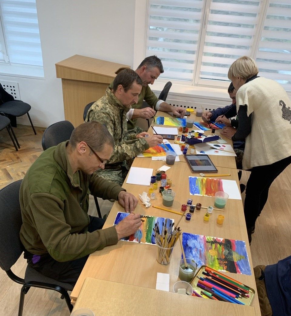 Один із військових, прийшовши на заняття із арттерапії одразу сказав: «Я не вмію нічого робити, окрім кованих виробів», – адже у цивільному житті працював ковалем, тож і вирішив намалювати ескіз вироба, над яким працював раніше. Також багато хто спершу не наважується малювати фарбами, адже здається, що це важко і потрібно мати спеціальні навики, але, коли з допомогою художниці кольорові мазки перетворюються в цілісну композицію, розуміють, що це тільки на перший погляд складно, а насправді цікаво та гарно.