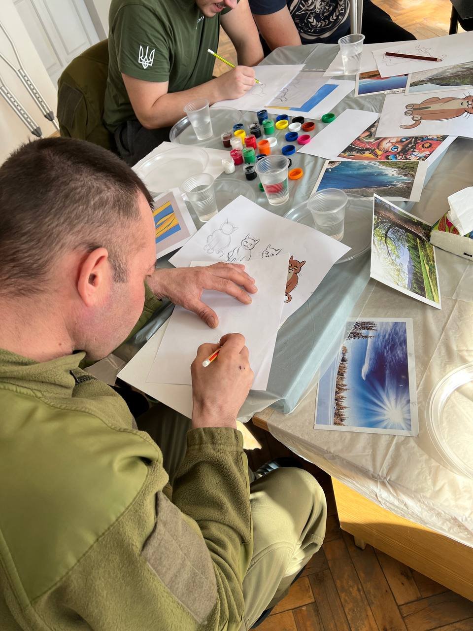Мистецька частина терапії полягала в тому, аби дати можливість захисникам зобразити на полотні все, що вони забажають. Більшість із учасників уперше взяли до рук пензлик, якщо не враховувати шкільні часи, тому дуже невпевнено бралися за фарби, проте вже за кілька хвилин процес захопив військових.